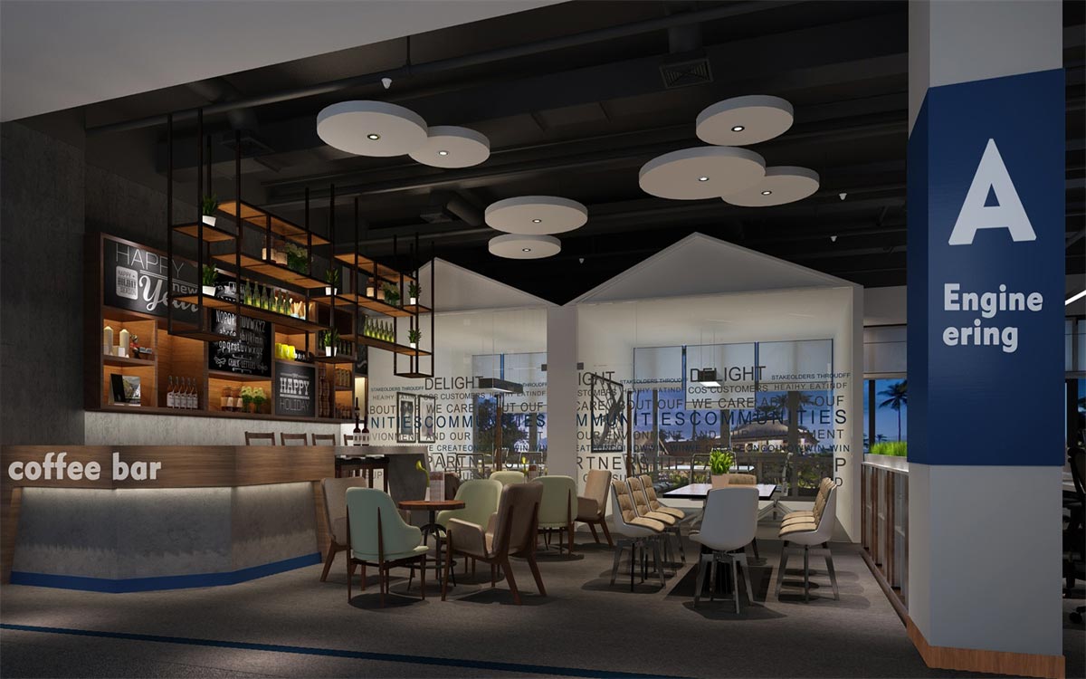 对这样一家全球化的企业,我们采用的是欧美式办公室设计装修,在前面的装饰上大多以木材为主要的装修材料,造型则以简洁大方,色调素雅的隔扇和景观为主,恰到好处的绿色植物可使整个办公空间有种“柳暗花明”的诗意,景观植艺的隔扇与墙面不仅可以改善空气质量,同时可以烘托空间含蓄清雅的境界,是传统装修风格的一个升华,在装修写字楼时采用此种风格可烘托出写字楼的一种含蓄和清雅的境界。这种欧美式的装修设计,接纳性高,适合员工来自全球精英的跨国性企业。