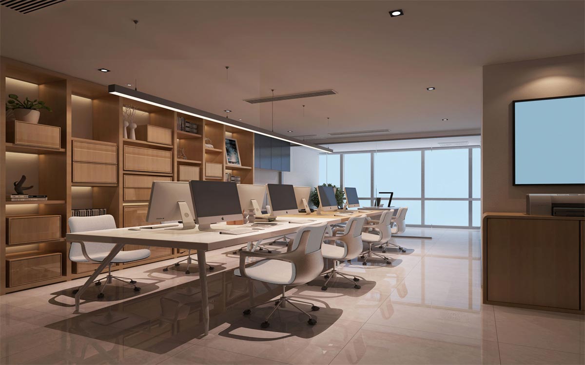 在充分了解企业类型和企业文化后,在办公室的装饰中更多的顾及到健康、温暖的主题,不能盲目追求利益,应该讲空间与艺术完美的结合,我们让前台造型更加的美观精致,色彩和谐,配置充足的灯光,使办公空间的装饰不单调。在家具的规格、颜色、造型选择上,尽量以舒适简单为主,让员工有种在家办公的感觉。舒适的办公室装饰可以使工作效率得到提升,企业效益也会大幅提高。