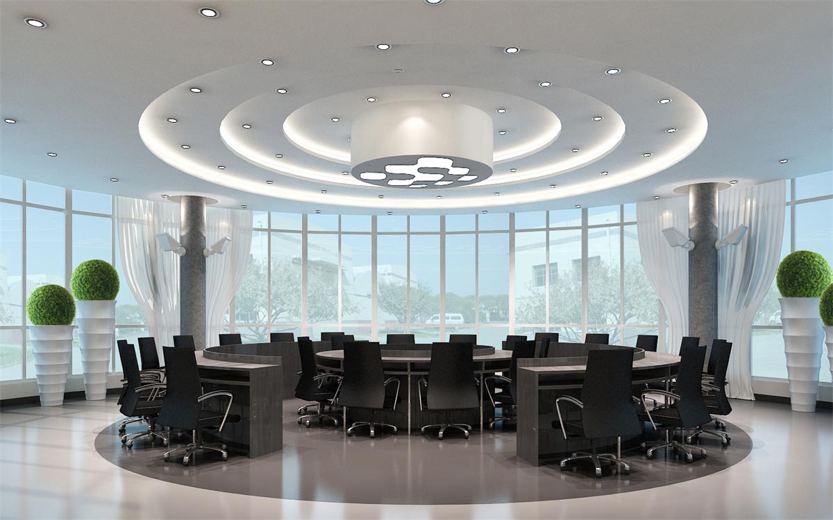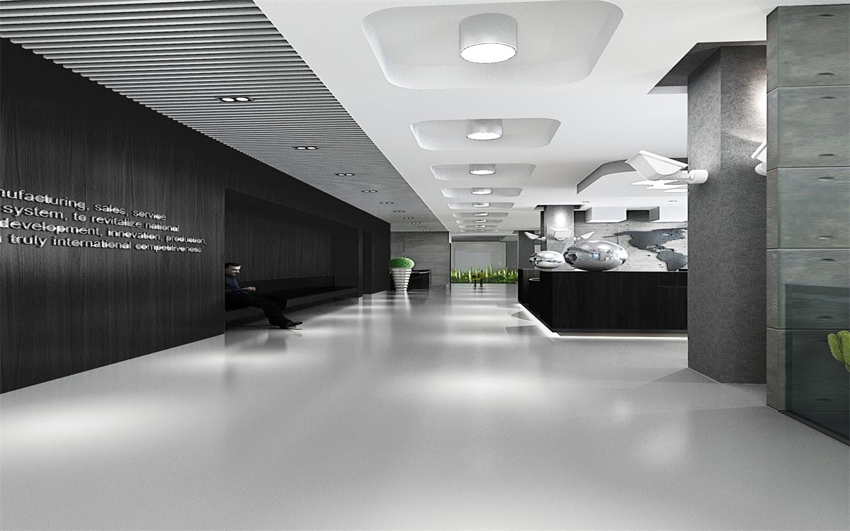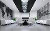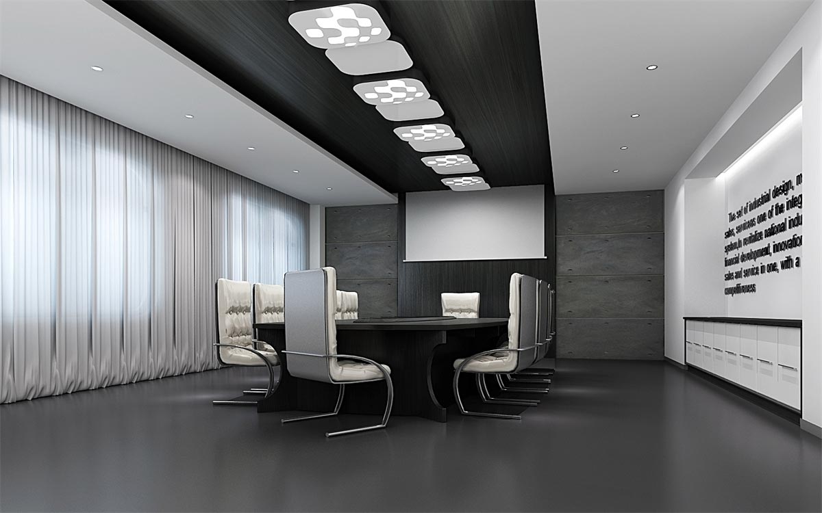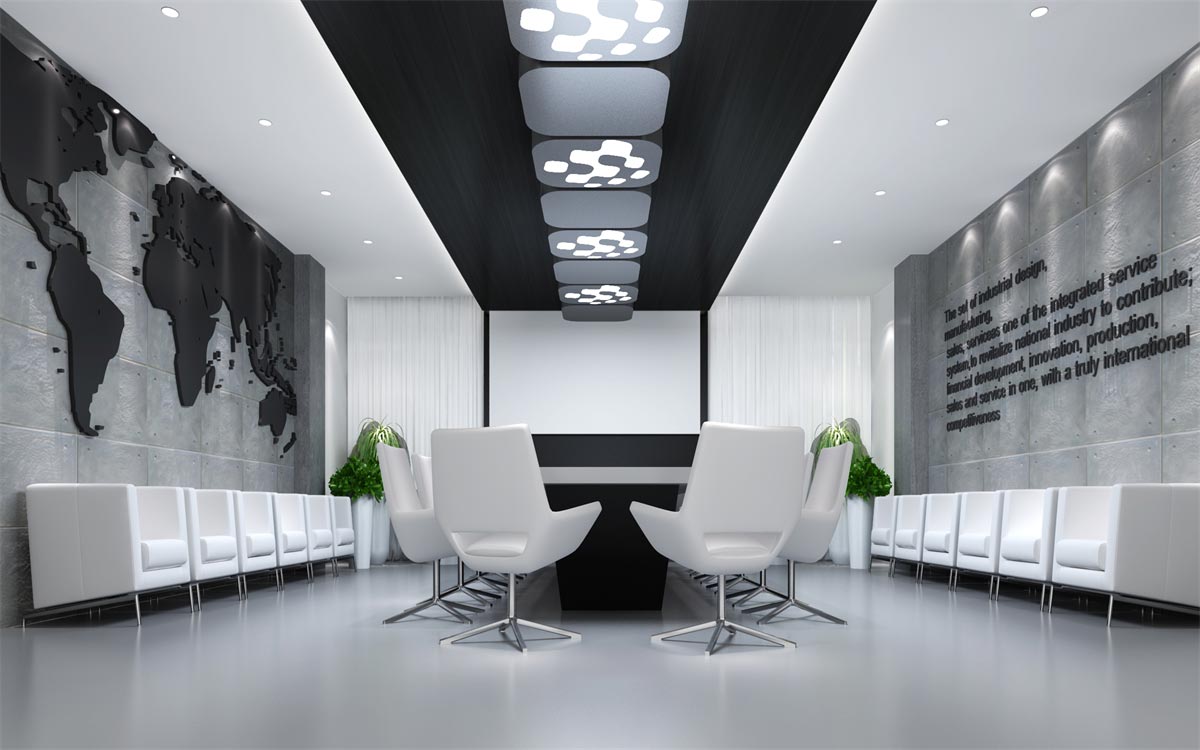 这类科技感办公室装修需要通过冷灰的色调才能彰显其高端大气的科技感,因此,选用最为经典的黑白灰色调进行搭配设计,简约的几何式线条,黑白色的交替搭配(黑色墙面与白色天花,或白色墙面黑色家具),整块的落地窗给足自然光的照射,搭配灯光的光、影映衬,与现代简约的冷色调家具搭配,让整个办公环境科技感十足。